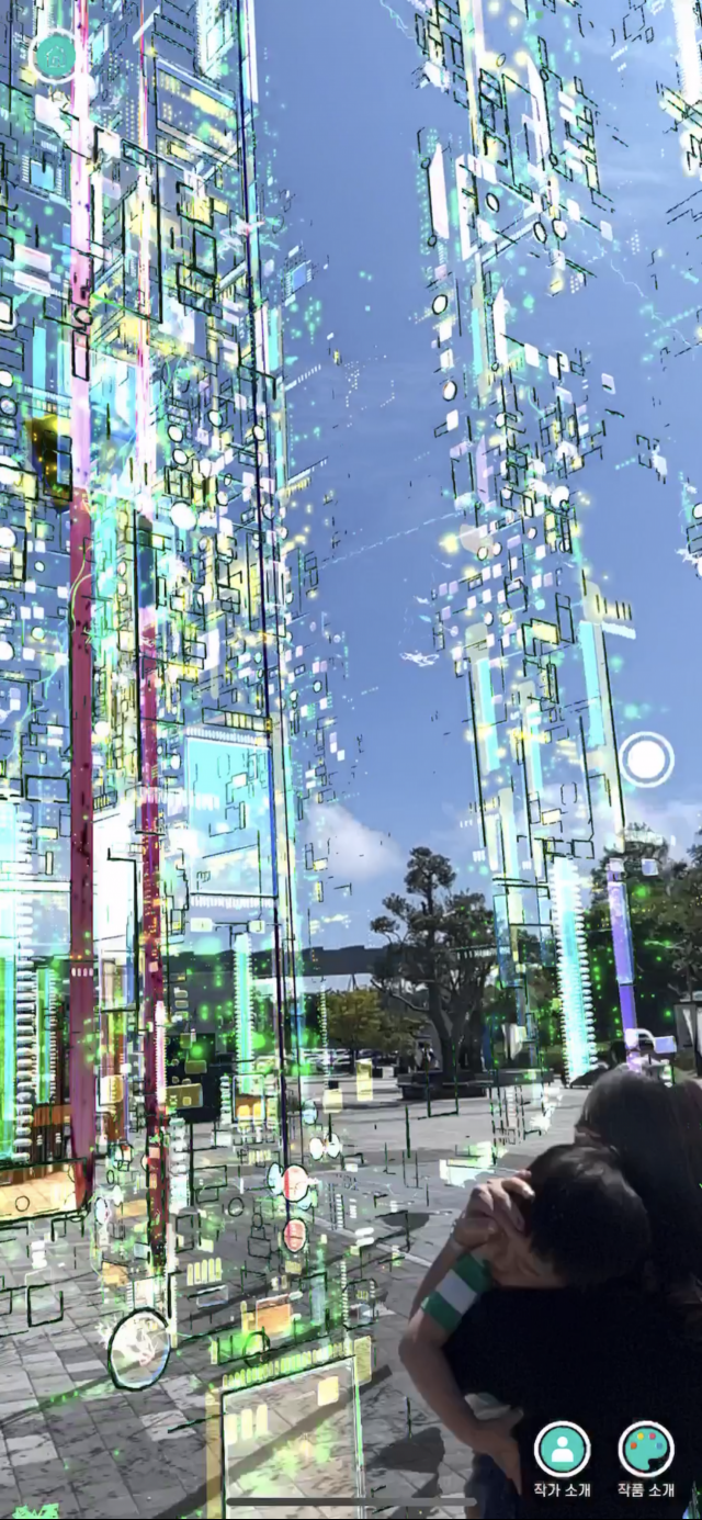 최근 김 작가는 선후배 작가들과 색다른 AR 전시를 기획했다. 국립부산과학관과 부산시민공원에서 AR 작품을 소개하는 ‘발견되는 감각들’이다. 야외 공간에서 진행되는 위치 기반 AR전시로 스마트폰에 앱을 다운로드 받으면 누구나 감상할 수 있다. 김 작가는 대중과 소통하는 장을 만드는 기술 적용과 협업에 즐거움을 느낀다고 했다. “해보니 협업 시스템이 너무 좋은 거예요. (함께 나누는) 예술의 힘을 알고 나니 머리 속에 불이 켜지더군요. 교육을 하고, 전문가와 협업하면서 이제 진짜 동시대미술을 하고 있다는 생각이 들어요.” 김 작가는 내년에는 국제 교류 전시도 추진 중이라고 밝혔다.