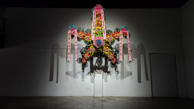 환하게 불이 켜진 간판, 곳곳에 뿌려진 전단지, 거리에 등장한 화려한 화환 등은 한국인에게는 익숙하지만 다른 문화권의 사람에게는 놀라운 풍경일 수 있다. 뉴커크 작가는 한국 밤 풍경의 일부를 작품으로 부각해 당연하게 여기던 이미지를 다시 보고, 그 속에 담기 힘과 메커니즘을 인지하게 만든다.