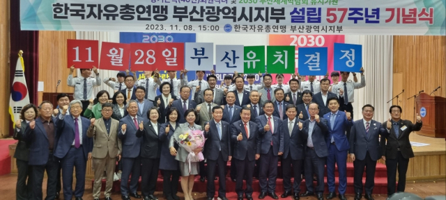 한국자유총연맹 부산시지부(회장 신한춘)는 8일 부산 부산진구 초읍동 부산자유회관 대강당에서 2030부산세계박람회 유치 기원 한국자유총연맹 부산시지부 제57주년 기념식을 개최했다.
