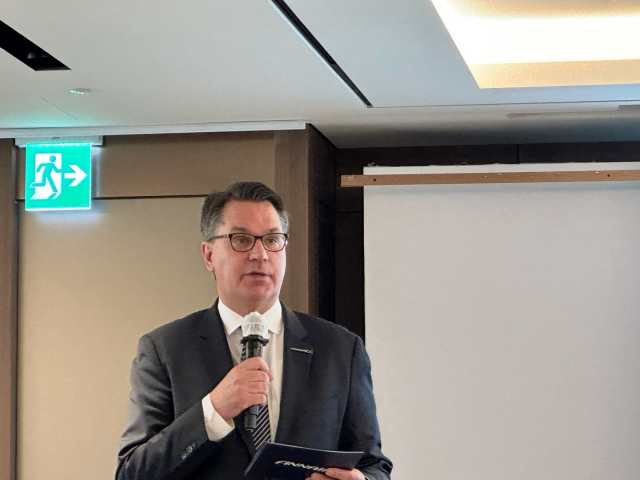 핀에어 올레 오버 부사장이 9일 ‘핀에어 창립 100주년 기념식’에서 발언하고 있다.