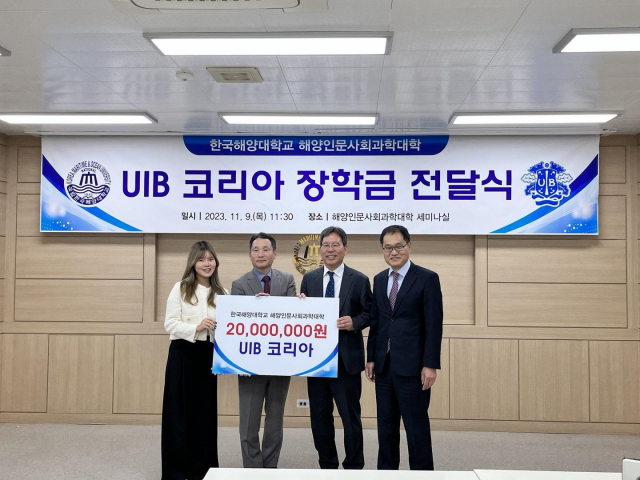 한국해양대학교 해양인문사회과학대학(학장 김인유)은 지난 9일 ‘UIB Korea의 장학금 전달식’을 가졌다.