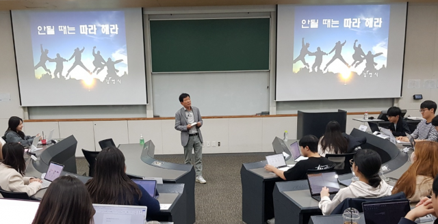 김영식세자녀출산지원재단의 김영식 이사장 지난 9일 서울 고려대학교 경영대학에서 ‘안될 때는 따라 해라’라는 주제로 특강을가졌다.