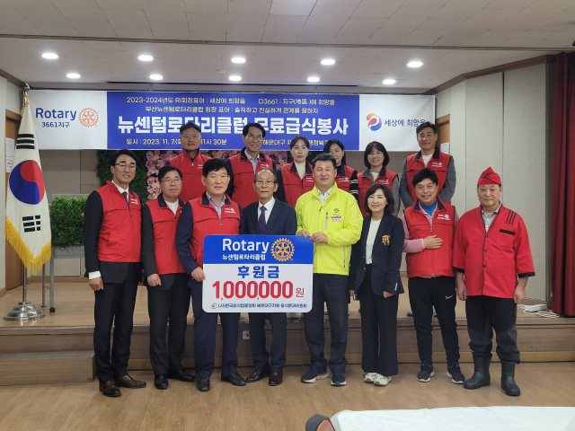 부산뉴센텀로타리클럽(회장 이춘우)은 지난 7일 회원들과 김성수 해운대구청장, 재송2동 유관단체 회원들과 재송2동 행정복지센터에서 무료 급식봉사 활동을 했다.
