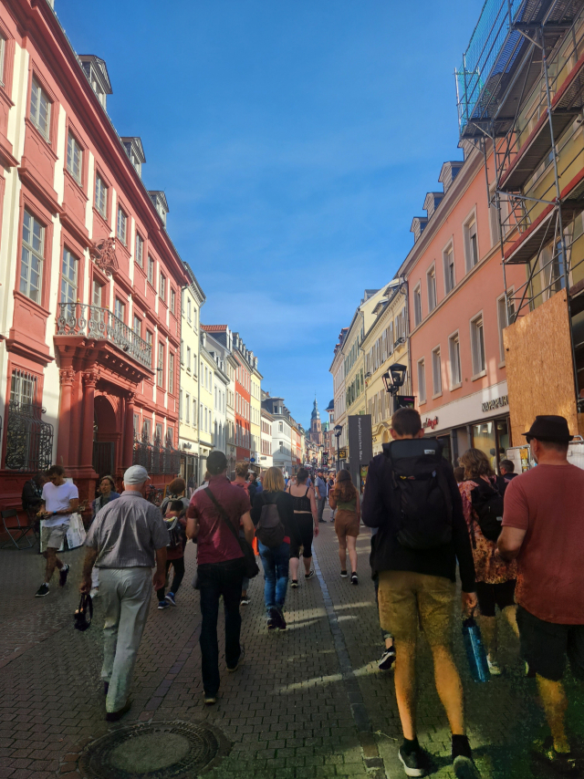 지난달 초 〈부산일보〉 취재진이 찾은 하이델베르크대 구시가지 캠퍼스 인근 거리는 평일임에도 인파로 발 디딜 틈이 없었다. 대학가엔 노트북을 켜고 작업하는 학생들과 가방을 둘러멘 관광객으로 가득했다. 하이델베르크대는 네카어강을 사이에 두고 유명 관광지인 ‘철학자의 길’ 건너편에 위치해 있다. 하이델베르크 대학은 전 세계 관광객은 물론 독일인들도 자주 찾는 관광지로 꼽힌다. 아이를 데리고 ‘대학 투어’를 온 학부모의 모습도 더러 보였다.
