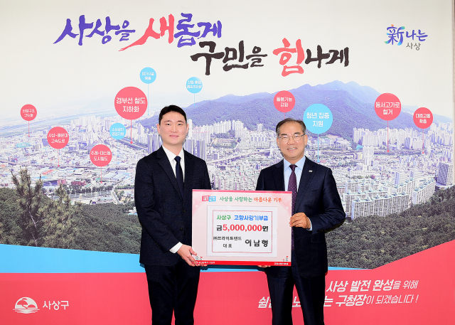 부산 사상구청(구청장 조병길)는 지난 25일 ㈜브라이트랜드 이남형 대표가 고향사랑기부금으로 500만 원을 쾌척했다고 밝혔다.
