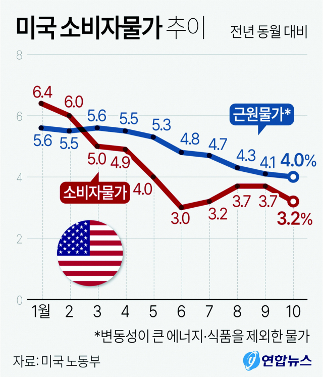지난 10월 미국의 소비자물가 상승률이 3.2%로, 예상치보다 낮게 나오면서 시장 관계자들은 ‘이제 연방준비제도이사회(연준)의 기준금리 인상은 끝났다’는 예측을 내놓고 있다. 이제 금리를 언제 내릴 것인가로 초점이 맞춰지는 분위기다.
