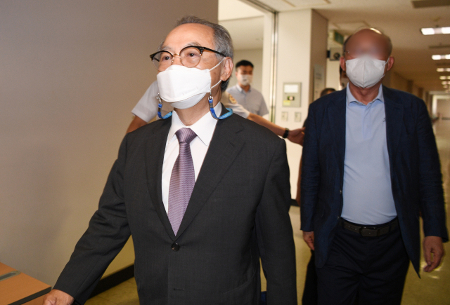 강제추행 기소된 오거돈 전 부산시장이 2021년 6월 결심공판에 출석하기 위해 부산지법에서 법정으로 들어가고 있다. 부산일보 DB