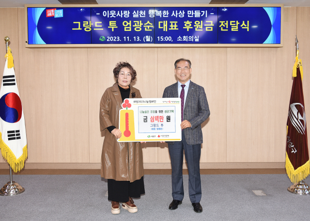 부산 사상구(구청장 조병길)는 지난 13일, 그랑드 투(대표 엄광순)로부터 후원금 300만 원을 전달받았다.