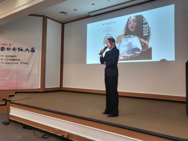 패션디자이너이자 패션핸드백 브랜드 (주)얼텀 대표인 조용주 씨가 지난 16일 부산일보 10층 강당에서 열린 제263기 부일여성대학에서 ‘들어라! 당신의 당당함을’이라는 주제로 강연을 했다.