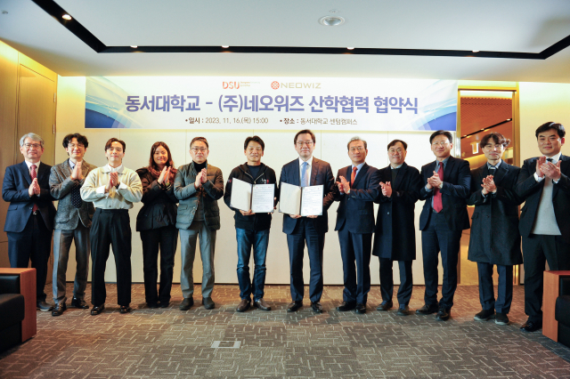 동서대학교(총장 장제국)와 (주)네오위즈(공동대표 김승철, 배태근)는 16일 오후3시 해운대 센텀캠퍼스 18층에서 상호 교류와 협력을 통한 상생발전과 공동 관심사에 대한 성공적 협력을 위해 업무협약(MOU)을 체결했다고 17일 밝혔다.