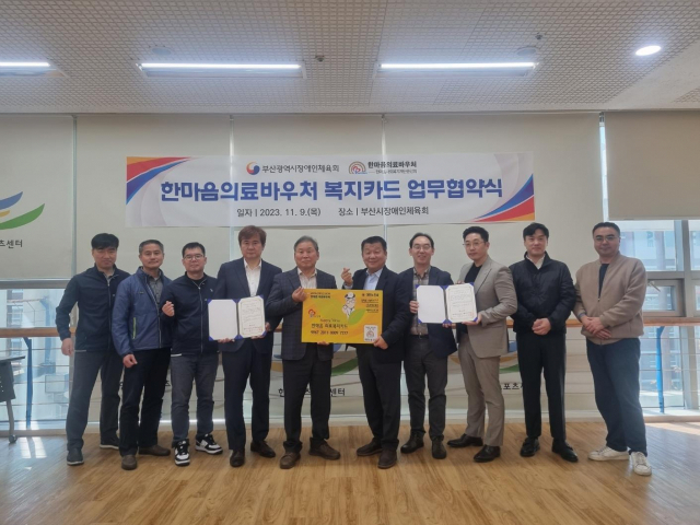 부산시장애인체육회는 지난 9일 한마음사회복지재단과 의료 취약계층의 건강 증진을 위해 한마음의료바우처 업무협약을 체결했다.