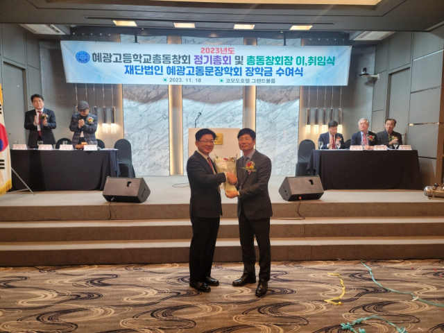 혜광고총동창회는 18일 부산 중구 코모도호텔 그랜드볼륨에서 열린 2023년 혜광고총동창회 정기총회에서 한국자산관리공사 경윤호 상임감사가 34대 새 회장으로 취임했다.