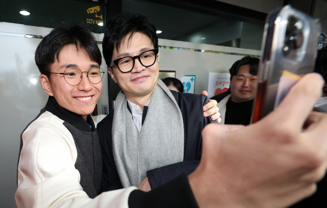 한동훈 법무부 장관이 지난 17일 대구 수성구 스마일센터를 찾아 시민들과 사진을 찍고 있다. 연합뉴스