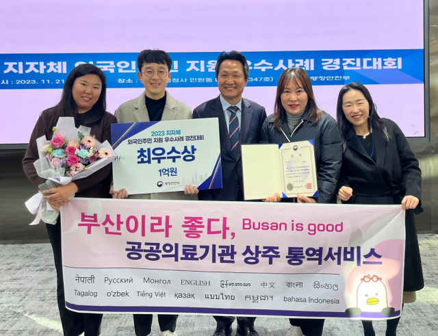 부산시(시장 박형준)는 행정안전부 주최 '2023 지방자치단체 외국인주민 지원 우수사례 경진대회'에서 '공공의료기관 상주 통역 서비스 운영'으로 최우수상을 수상했다고 밝혔다.