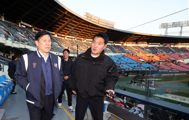 잠실구장 현장 안전점검하는 허구연 KBO 총재 (서울=연합뉴스) 서대연 기자 = 허구연 KBO 총재가 7일 2023 KBO 한국시리즈 1차전 kt 위즈와 LG 트윈스의 경기가 열리는 서울 잠실야구장을 찾아 경기에 앞서 현장 안전 점검을 하고 있다. 2023.11.7 [공동취재] dwise@yna.co.kr (끝)