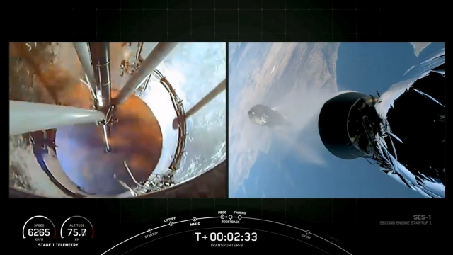 진주샛-1이 발사 이후 빠르게 대기권 밖으로 진출하고 있다. 발사 영상 캡쳐