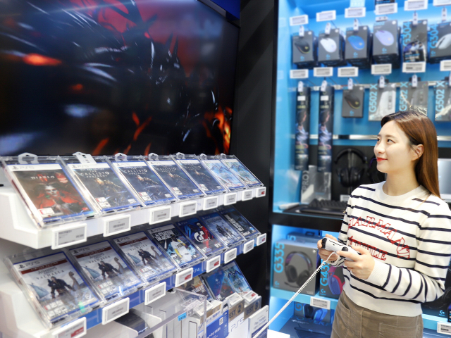 롯데하이마트는 지난 16일부터 22일까지 최근 일주일간 매출을 살핀 결과, 게임 가전 매출이 직전 일주일 대비 약 40% 늘었다고 23일 밝혔다. 롯데하이마트 대치점에서 게임 가전을 살펴보는 모델의 모습. 연합뉴스