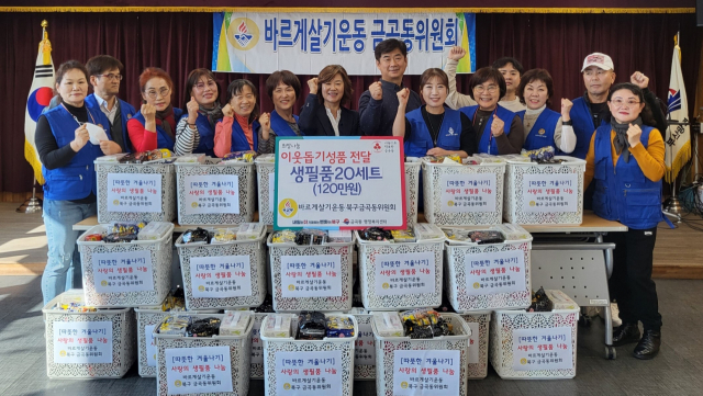바르게살기운동 북구 금곡동위원회(위원장 이은호)는 최근 연말을 맞아 금곡동행정복지센터(동장 신정수)에 저소득층 20세대를 위한 생필품 세트(120만 원 상당)를 지정 기탁했다.