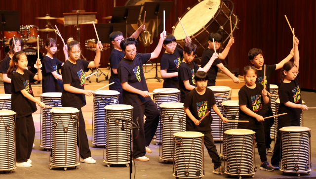 학교 예술동아리 활동 결과 공유·발표의 장인 ‘2023 예문페스티벌’이 29일 오후 부산 북구 부산학생예술문화회관에서 열렸다. 연미초등학교 학생들이 난타 공연을 선보이고 있다. 강선배 기자 ksun@