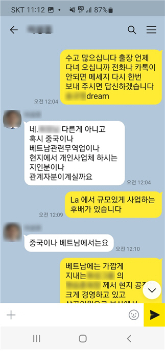 피해자 B 씨는 "교수님으로부터 연락이 와서 총장님이 미국에 있는데 급하게 돈을 입금할 수가 없다고 한다, 먼저 현지 돈으로 입금해주면 달러를 보내주겠다고 하니 믿은 것"이라면서 "보이스톡으로 통화까지 했지만, 일면식이 없는 상태에서 50대의 중후한 남자 목소리와 위엄 있는 말투에 속아 넘어간 것 같다"고 말했다. A 씨는 또 피해자가 낌새를 눈치챌 기미가 보이면, 통화가 곤란하다며 문자 대화를 유도했다.