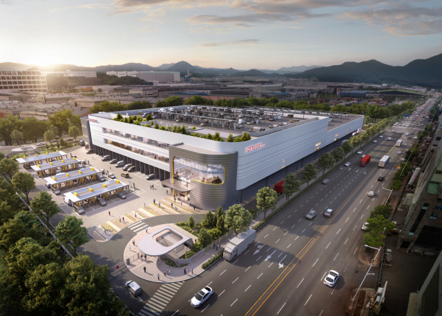롯데쇼핑은 박형준 부산시장과 신동빈 롯데그룹 회장 등이 참석한 가운데 5일 부산 강서구 미음동 국제산업물류도시에 위치한 ‘고객 풀필먼트 센터(CFC·자동화 물류센터)’ 부지에서 기공식을 열었다(위). 롯데 CFC 조감도. 강선배 기자 ksun@