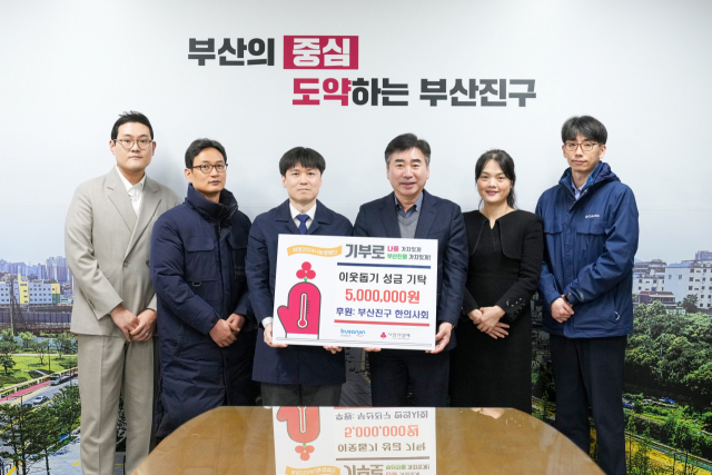 부산진구(구청장 김영욱)는 지난 5일 부산진구 한의사회(회장 이광덕)에서 부산진구청을 방문해 이웃돕기 성금 500만 원을 기탁했다고 밝혔다.