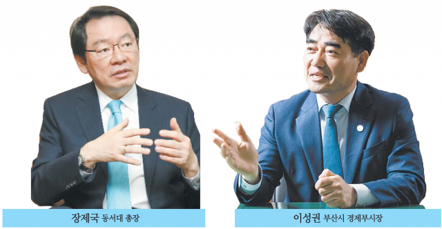 〈부산일보〉 기획시리즈 ‘유럽 대학도시에서 배운다’를 통해 유럽의 중소 도시들이 대학을 통한 젊은 인구의 유입, 끊임없는 일자리 창출, 그리고 주민들과의 활발한 소통으로 동반 성장하는 모습을 4차례에 걸쳐 살펴봤다. 한국대학교육협의회장인 동서대 장제국 총장과 부산시 이성권 경제부시장의 대담을 통해 부산에서 대학과 지자체, 지역주민, 기업이 상호 협력하면서 발전을 견인하는 공동체로 상생할 수 있는 해법을 모색해 본다.