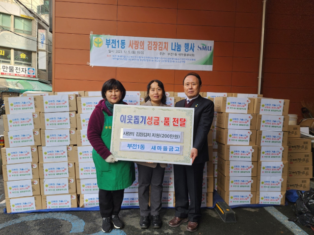 부산 부산진구 부전1동 새마을금고(이사장 추연종)은 지난 5일 부전1동 새마을부녀회 ‘사랑의 김장김치나눔’ 행사에 후원금 200만 원을 전달했다.
