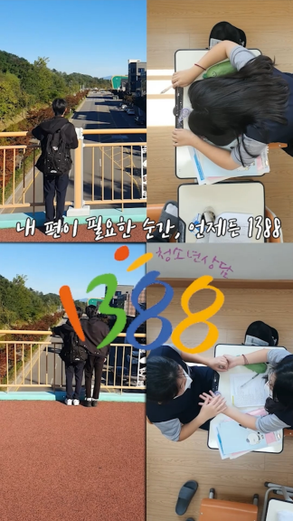 ‘내 편이 필요한 순간, 언제든 1388’ 브랜드 슬로건 홍보를 위한 자유 주제로 ‘23년 8월 28일~10월 20일, 2달간 진행되었다.