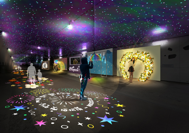 동래구청은 오는 15일부터 다음 달 31일까지 약 한 달이 넘는 기간동안 제1회 ‘빛이 물든 온천천 빛 축제’를 개최한다. 사진은 ‘꿈의 길’을 테마로 한 2구역 동래역 음영지 이미지. 동래구청 제공