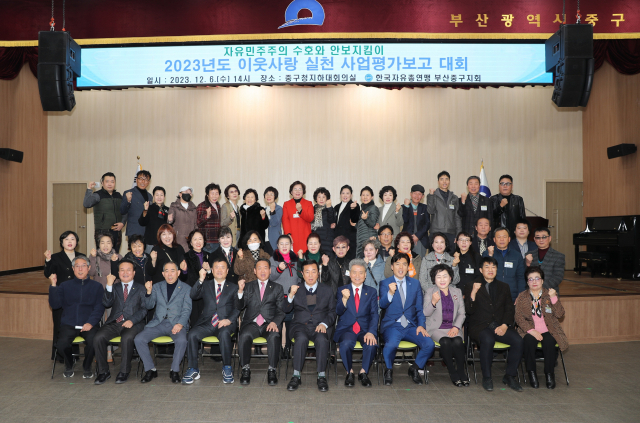 한국자유총연맹 부산중구지회(지회장 이희산)는 지난 6일 구청 대회의실에서 회원과 내빈 등 100여 명이 참석한 가운데 ‘2023년 이웃사랑 실천 사업평가보고 대회’를 개최했다.