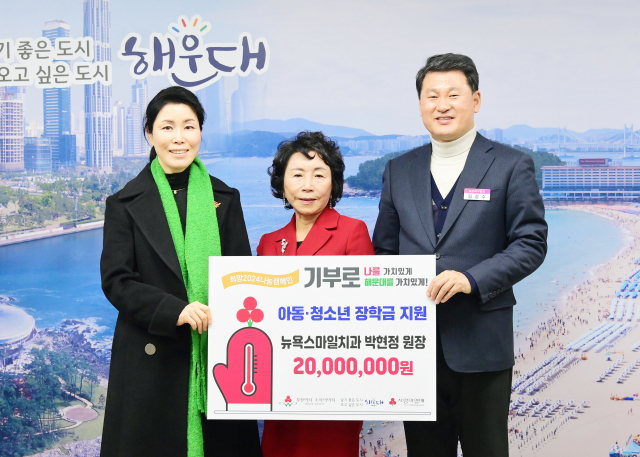 부산사회복지공동모금회(회장 최금식‧부산사랑의열매)는 지난 6일 해운대구청(청장 김성수)에서 뉴욕스마일치과의원 박현정 원장(부산아너 130호)의 연말 이웃돕기 성금 전달식을 진행했다.