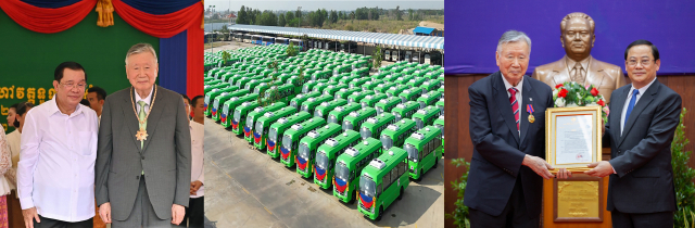 이 회장은 캄보디아와 라오스의 주요 도시 대중교통 개선을 위해 올해 2월 캄보디아에 버스1200대를 기부한데 이어 라오스에도 버스 600대를 기증했다.