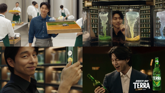 이번 광고에서는 테라 브랜드 광고 특유의 상상력으로 청정라거가 만들어지는 과정을 위트 있고 세련된 볼거리와 분위기로 표현했다. 특히, 1인 3역을 맡아 열연을 펼친 공유가 다양한 매력을 선보이며 광고의 재미를 배가 시켰다.