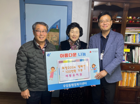 부산 남구 우암동 소재의 색동유치원(원장 정영숙)은 작년 연말, 희망 2023 나눔 캠페인에 100만 원을 기부한 데 이어 올해도 희망2024나눔캠페인에 기부금 100만 원을 전달했다.