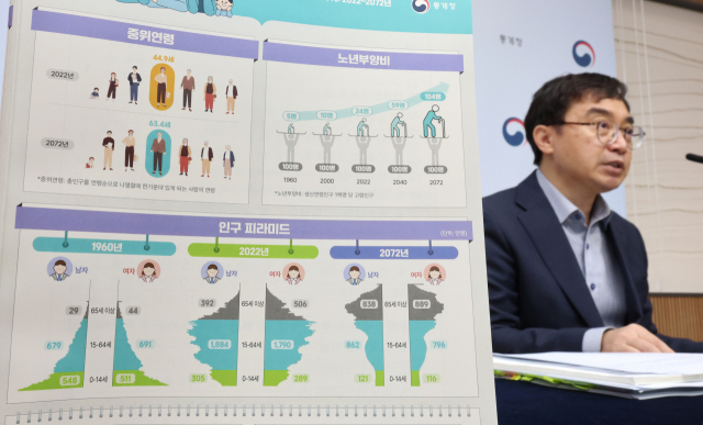 임영일 통계청 인구동향과장이 14일 세종시 정부세종청사에서 2022~2072년까지 장래인구추계 작성 결과를 설명하고 있다. 연합뉴스