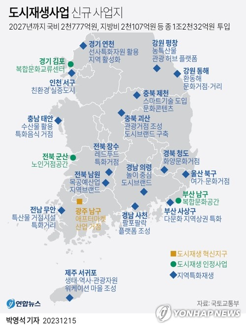 지역 특색을 살린 '지역특화재생' 사업으로는 부산 사상구, 울산 북구, 경남 사천·의령 등 16곳이 선정됐다.