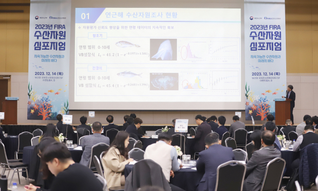 한국수산자원공단은 지난 14일 부산항 국제전시컨벤션센터에서 ‘지속가능한 수산자원과 미래의 바다’를 주제로 ‘수산자원 심포지엄’을 성공적으로 개최했다(심포지엄 전경). 수산자원공단 제공