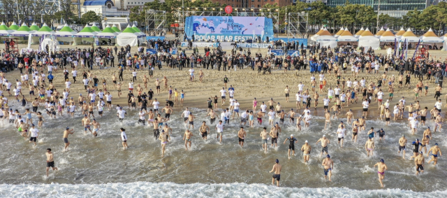 '제36회 해운대 북극곰축제'가 열린 16일 부산 해운대해수욕장에선 직접 바닷물에 뛰어든 '인간북극곰'과 가족, 관람객 등 1만여 명이 모여 함께 겨울바다를 즐겼다. 3년 만에 바닷물 입수까지 정상적으로 개최되자 긴 시간을 기다렸던 2000여 명의 '인간북극곰'들이 환호와 함께 바다로 뛰어드는 장관을 연출하며 대미를 장식했다.