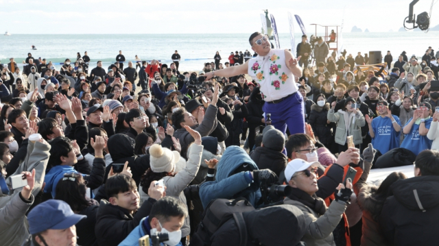 16일 오후 부산일보 주최로 부산 해운대해수욕장에서 열린 '36회 해운대 북극곰축제'에서 참가자들이 가수 '싸이버거'의 공연을 즐기고 있다. 이재찬 기자 chan@