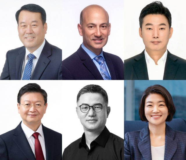 사진은 왼쪽 위부터 시계 방향으로 이동석 현대자동차 사장, 브라이언 라토프 현대차·기아 사장, 김윤구 현대오토에버 사장, 김혜인 현대자동차 부사장, 전병구 현대카드 사장, 배형근 현대차증권 사장. 연합뉴스