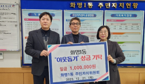 화명1동 주민자치위원회(위원장 전진율)는 지난 21일 화명1동 행정복지센터(동장 박영이)에 이웃돕기 성금 100만원을 기탁했다.