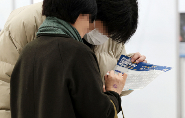 서울 코엑스에서 지난 14일 열린 대입 정보박람회에서 학생과 학부모가 부스 배치도를 보고 있다. 연합뉴스