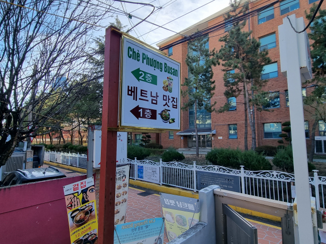 부경대학교 대연캠퍼스 인근의 베트남 음식점 안내 표지판.