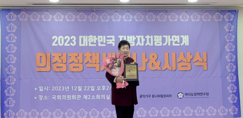 ‘2023 대한민국 지방자치평가연계 의정정책대상’은 지방자치제도 활성화 및 주민행복정책 입안, 주민복지 증대, 삶의 질 향상, 경쟁력 있는 지역발전시책 장려 등 활발한 의정활동과 지방자치제도 발전에 기여한 우수 의원에게 수여하는 상이다.