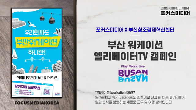 2021년 부산에 지사를 둔 포커스미디어코리아는 불특정 다수가 짧은 순간 지나치는 로비가 아닌 입주사 임직원이 매일 반복해서 머무르는 승강기 탑승 대기 공간에 정면 눈높이로 설치하고, 또렷한 음향까지 전달해 집중도가 높아 워케이션에 대한 기업들의 인식 전환이 이뤄지는 계기가 될 것으로 기대하고 있다.