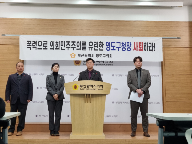 이날 기자회견에 참석한 더불어민주당 소속 김지영 구의원은 “구민을 대표하는 구의회 의장에 대한 폭행과 모욕은 영도구민을 폭행하고 모욕한 것”이라며 “폭력으로 의회 민주주의를 유린한 영도구청장은 책임지고 조속히 사퇴하라”고 요구했다.