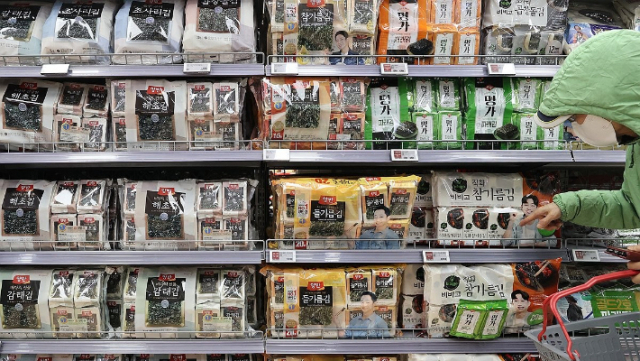 우리나라 수산식품 가운데 세계 시장 점유율 1위인 ‘김’ 수출액이 지난해 연간 7억 9100만 달러(1조 200억 원)를 기록했다. 대형마트에 진열된 조미김. 연합뉴스
