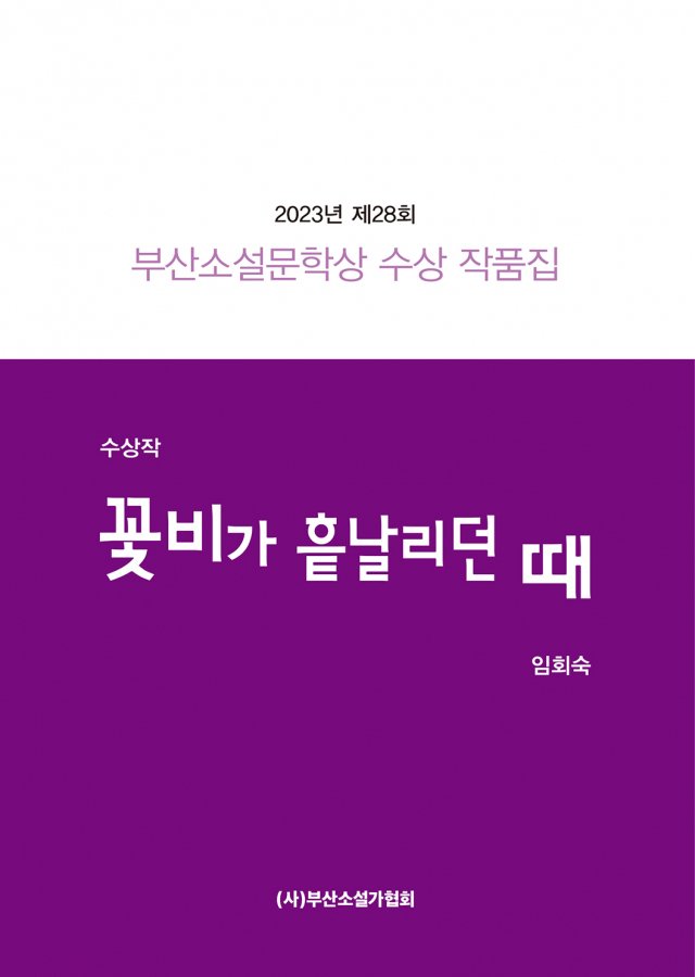 부산소설가협회(회장 정인)는 제28회 부산소설문학상 수상 작품집 <꽃비가 흩날리던 때>를 냈다. 표제는 임회숙 소설가의 본상 수상작 이름이다. 이와 함께 우수작인 강미 소설가의 ‘안녕, 작은 서지영’, 강연화 소설가의 ‘구름이 되어 다시’, 안지숙 소설가의 ‘영옥이’, 오선영 소설가의 ‘임시보호자’가 게재돼 있다. 맨 앞에 심사평이 실려 있다.