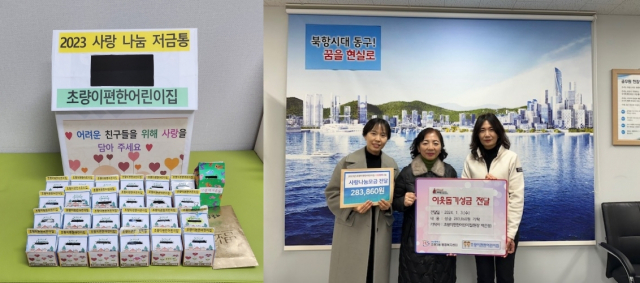 초량이편한어린이집(원장 백은정)은 최근 부산 동구(구청장 김진홍) 초량3동행정복지센터에 원아들의 ‘사랑나눔 저금통(28만 3860원)’을 희망2024나눔캠페인 성금으로 기탁했다.